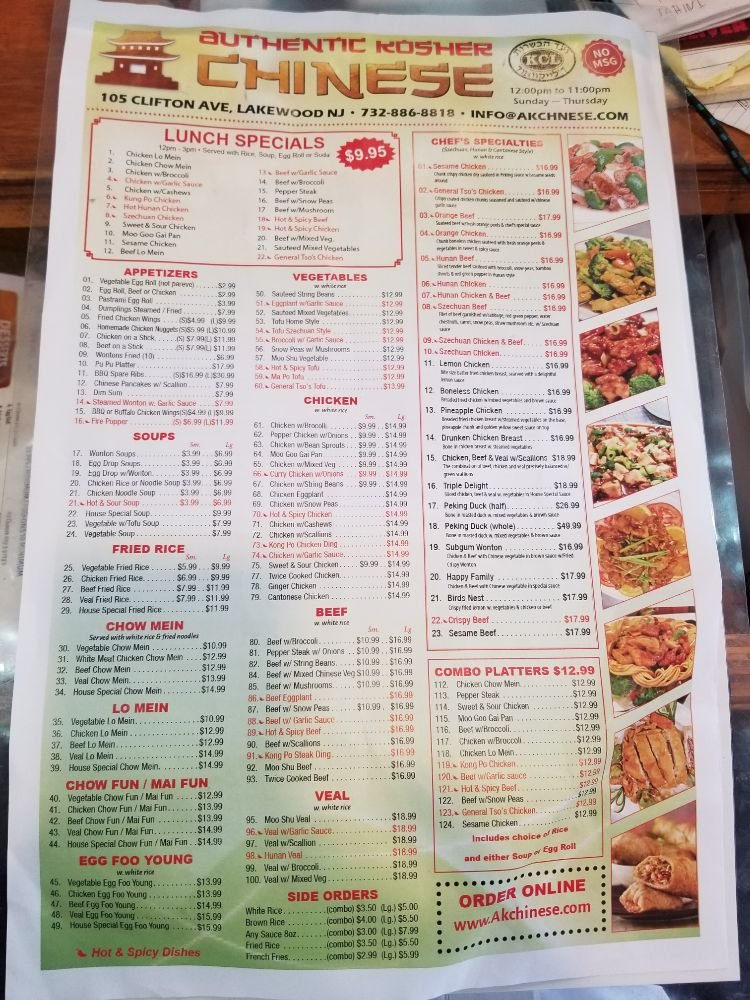 Customers rave about the freshness of the ingredients, with many noting the absence of MSG—a genuine plus for health-conscious diners. Whether you're dining in or ordering takeout, Authentic Kosher Chinese guarantees quality service and flavor that keeps you coming back for more. Experience a meal that truly hits the spot!